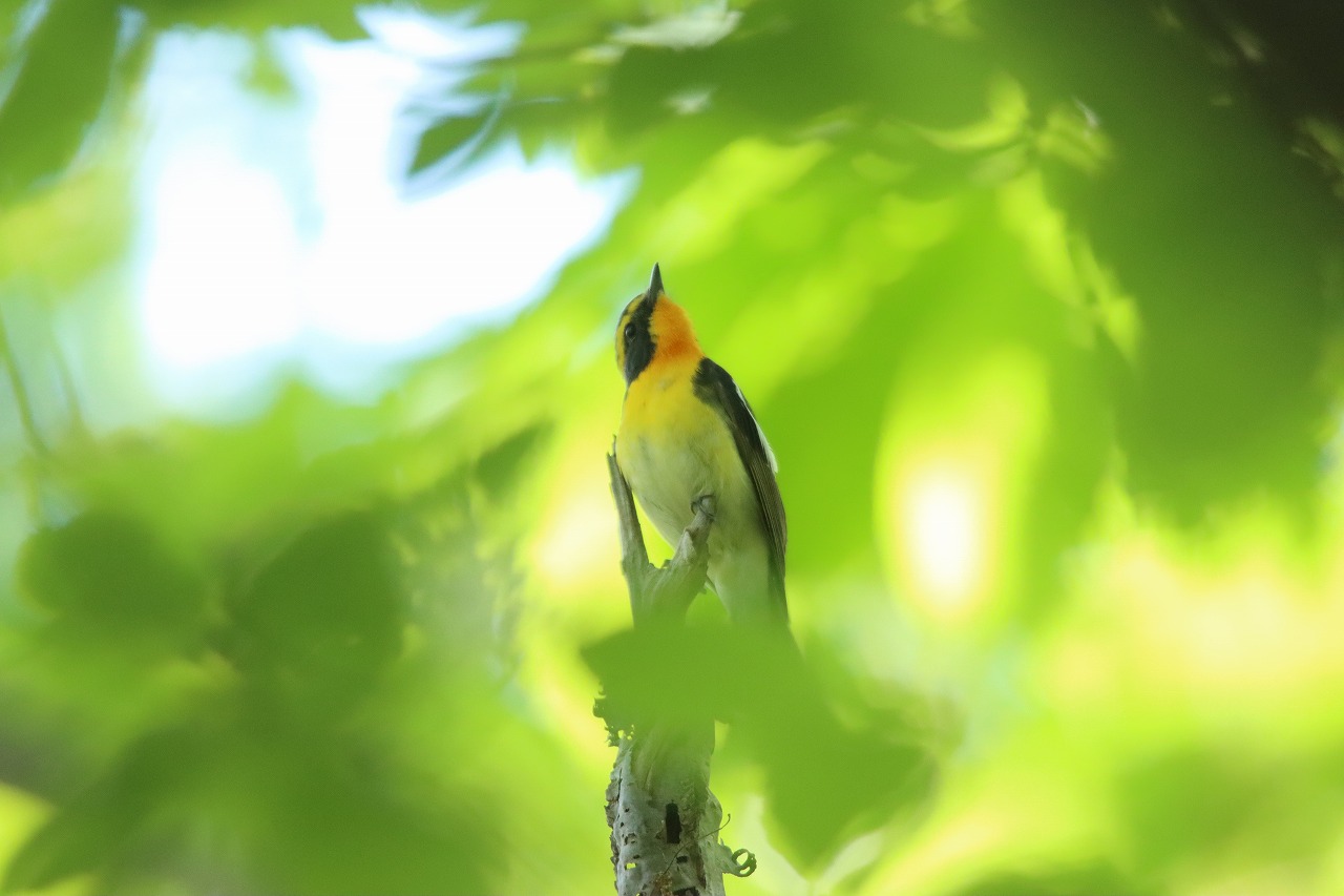 オオムシクイは例年6月中旬から下旬まで滞在していますが、よく葉が茂った木があれば街中のちょっとした公園にも来ることがあります。