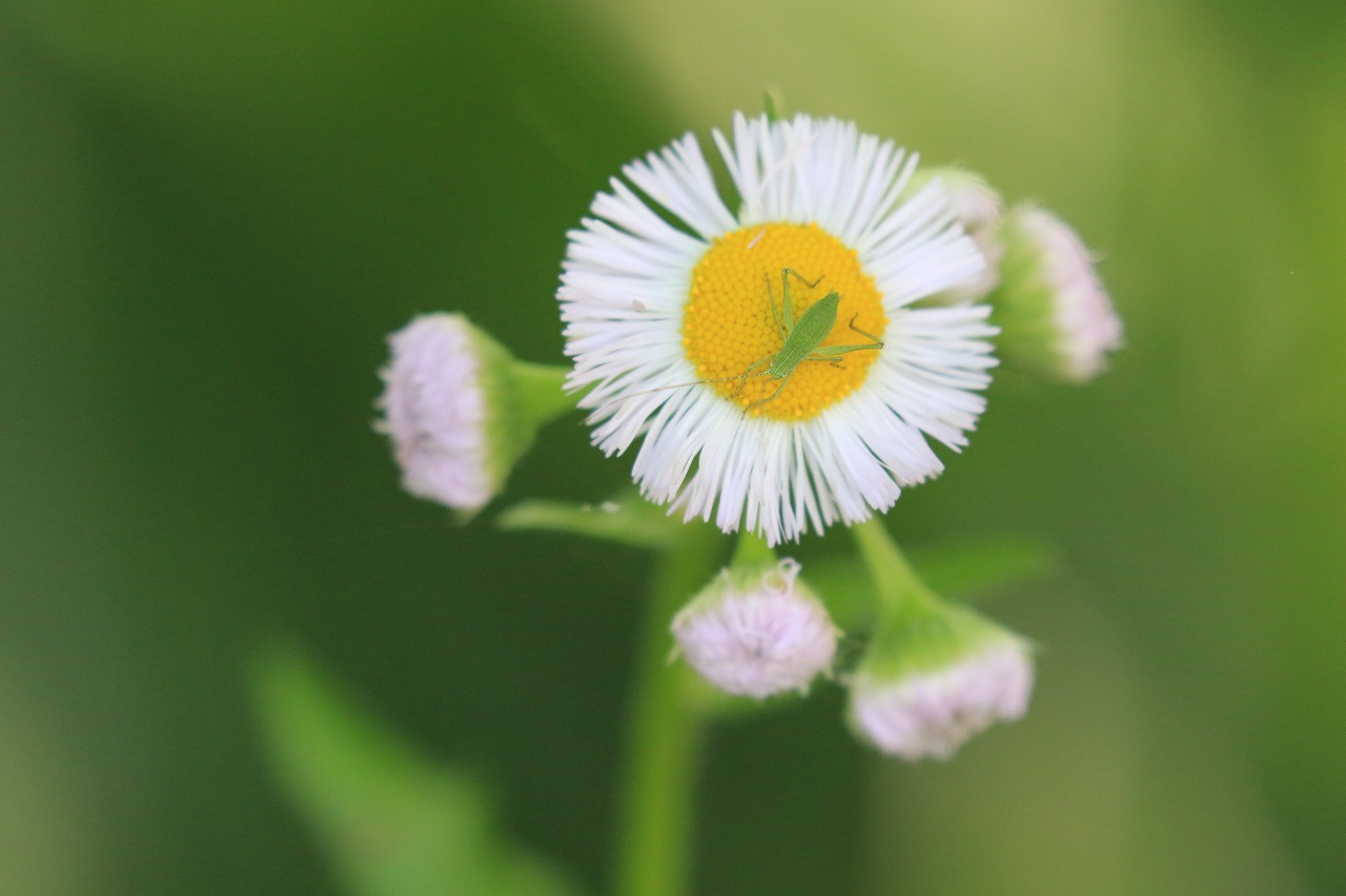 ヒメジョオンと似ていますが、ハルジオンは花弁が細い(ヒメジョオンはそれよりは幅広い)、茎が空洞(ヒメジョオンは中が詰まっている)、といった違いの他、花期がずれていて、旭山ではハルジオンが終わってからヒメジョオンが咲き出します。