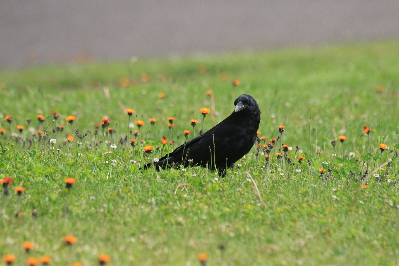 写真はコウリンタンポポとボソ(ハシボソガラス)です。