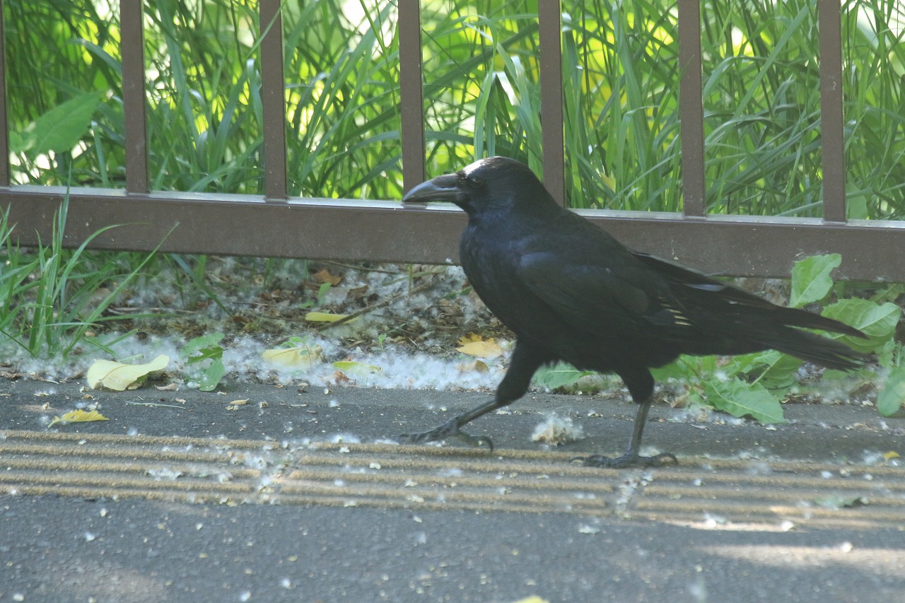 今年もハシブトガラスが数羽で桜の実を食べに来ており、それを嫌ってのことかもしれません。