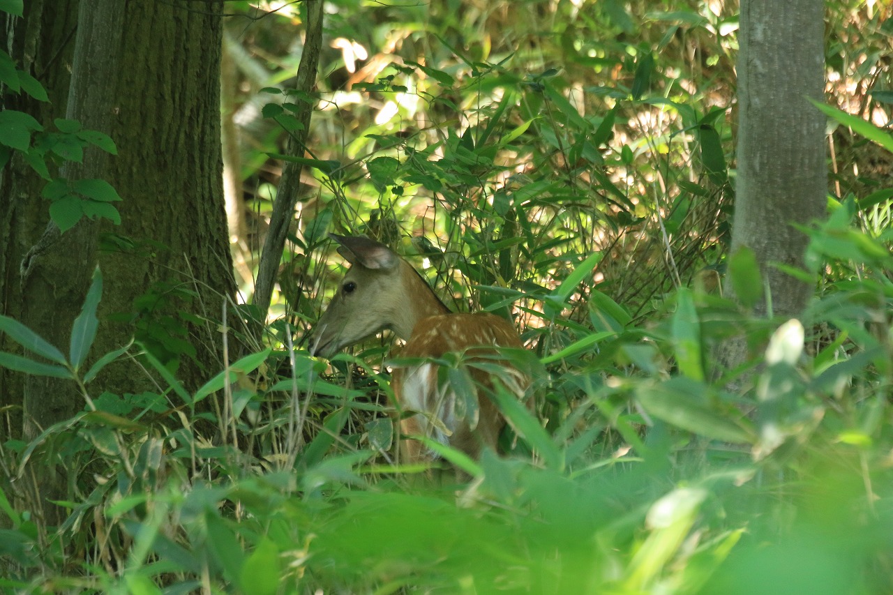 写真はそのうちの1頭と思われるものですが、人に慣れているのか、他のエゾシカよりは逃げるまでの距離が近く、15mくらいにまで寄れたという情報もありました。