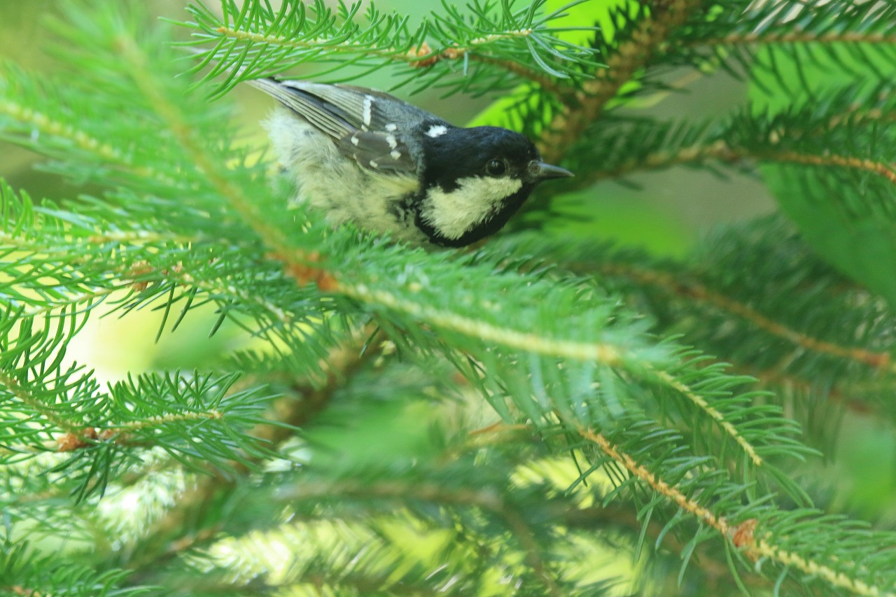昨日今日と、「ミュンヘンの森」や森の家外掲示板の裏にあるプンゲンストウヒにちょくちょく来ていて、近くで見られる機会もあり、幼鳥の姿も見られています。