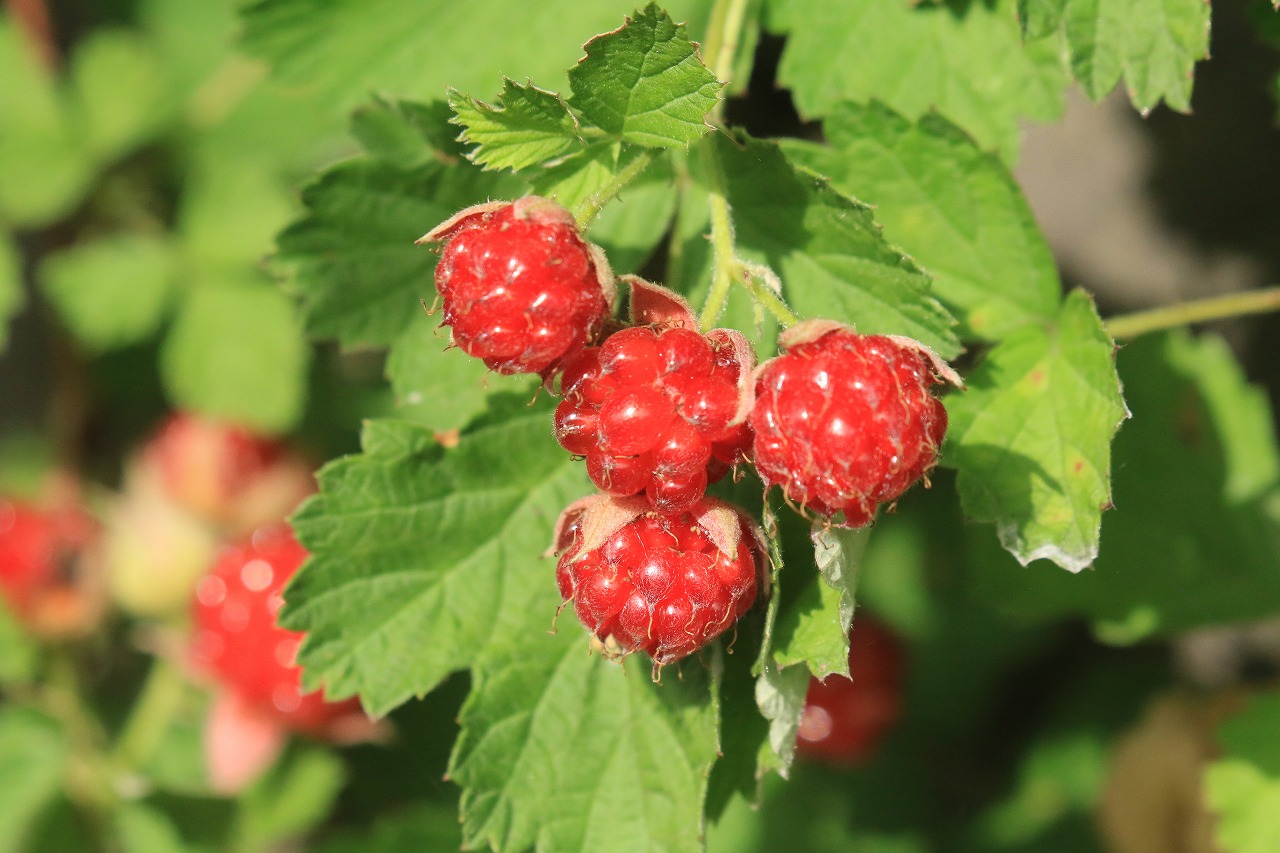 6月に花が咲いていたバラ科のナワシロイチゴ、赤い実、いわゆる木苺がなりました。