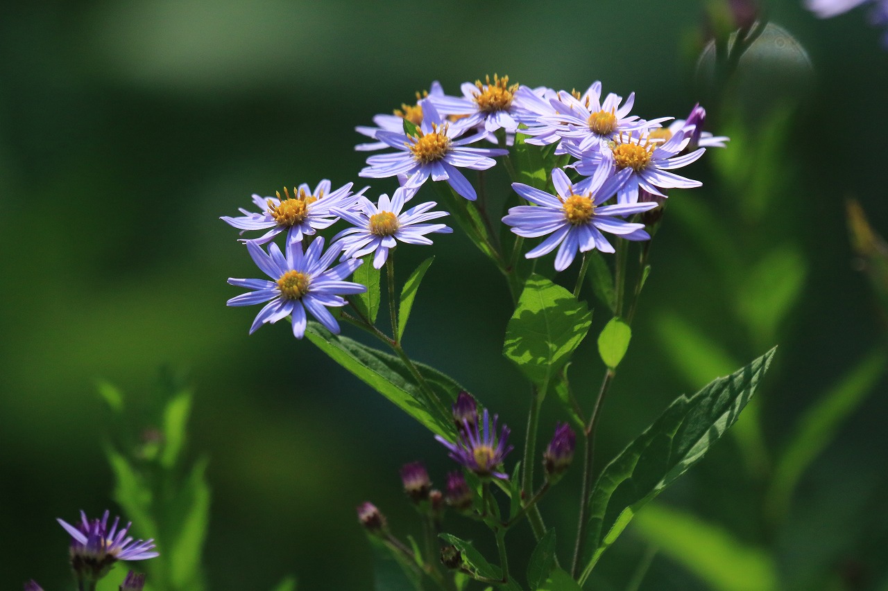 次に紹介するエゾノコンギクと似た感じ、同じような場所に生えていますが(これらの写真はどちらも森の家の前で撮影)、花弁の形や葉の形などで見分けることができます。