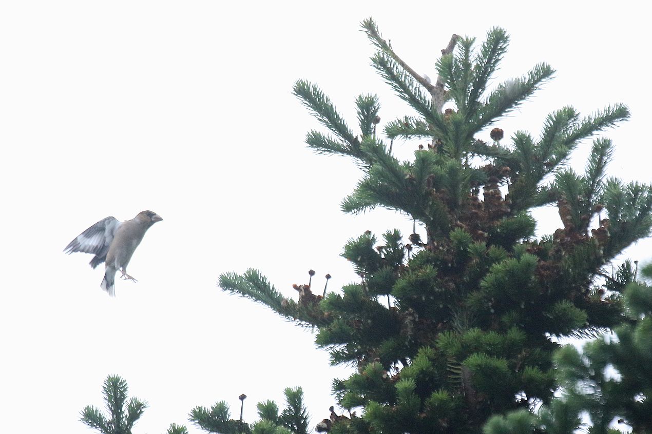先週、その場所にイカルが来ていたと書きましたが、そのトドマツにシメも来ていたということです。