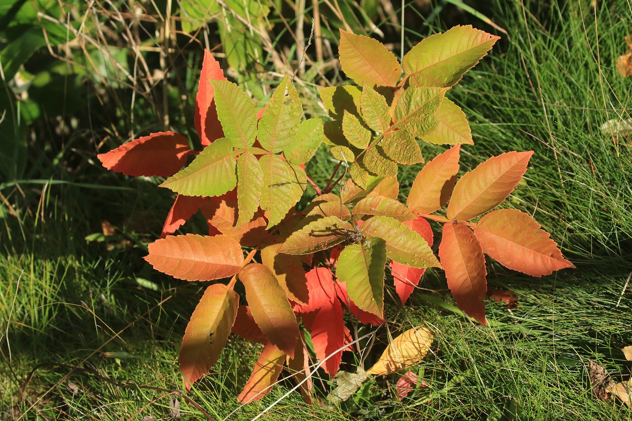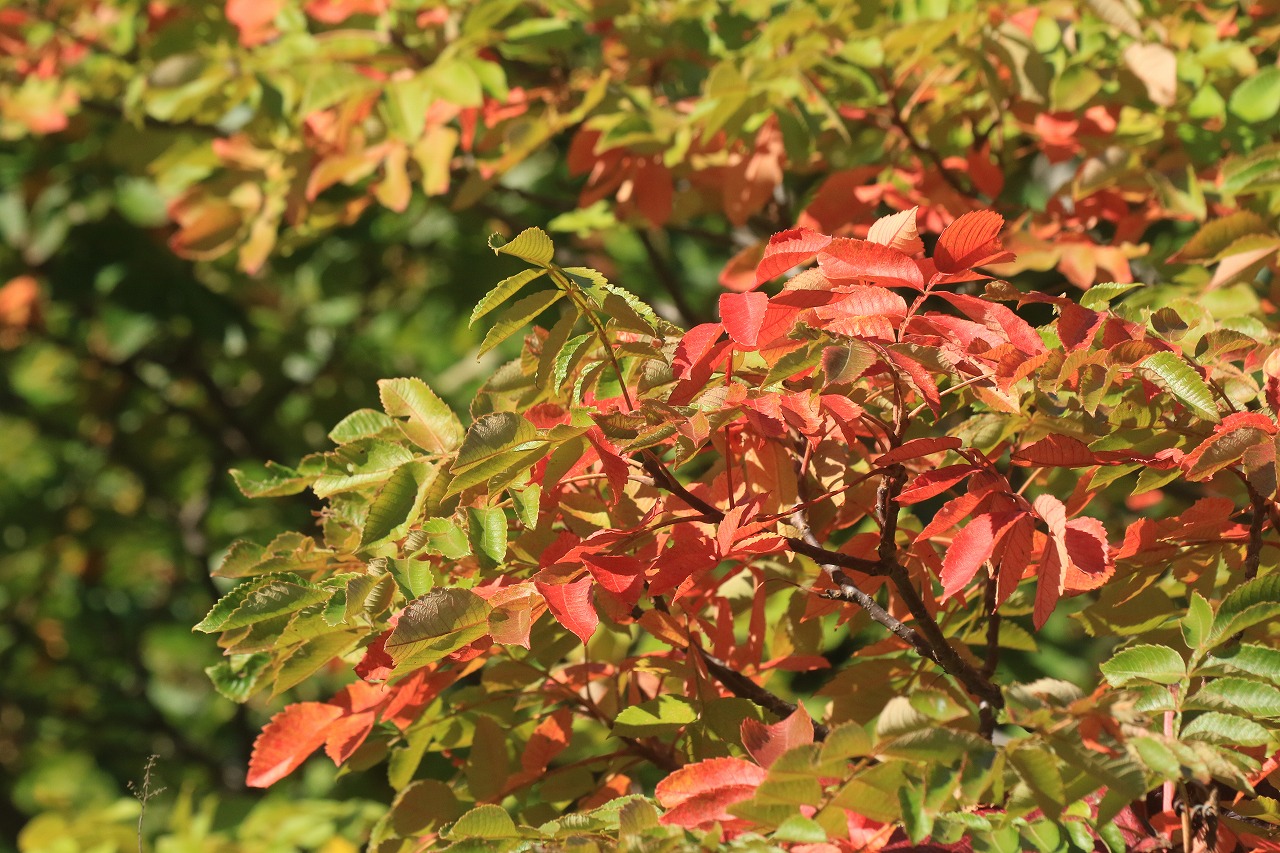 「展望台北西木立」のヌルデも赤い葉がだいぶ増えてきました。