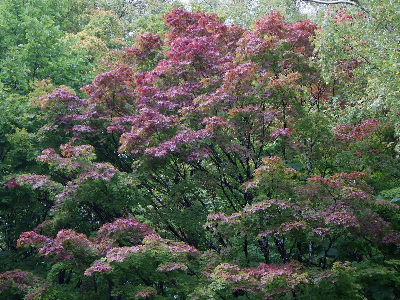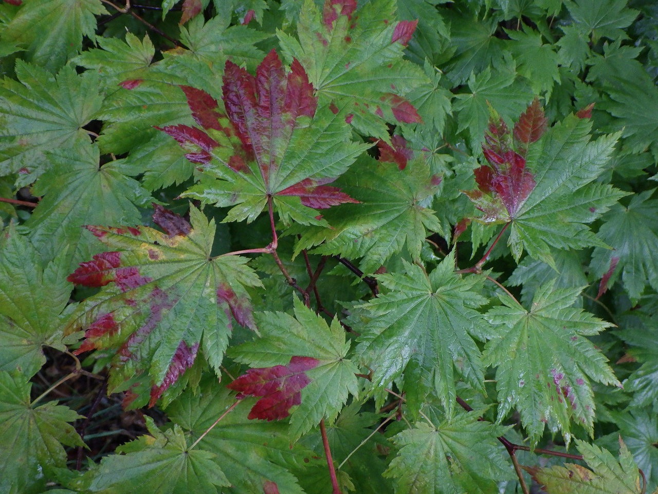ハウチワカエデといえば、通称「しもやけ」、秋に一部だけが赤くなる葉っぱも見られるようになってきました。