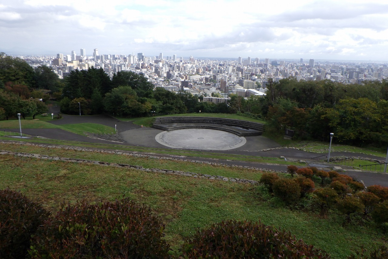 旭山といえば街の眺望、この時はまだ雨が上がったばかり。