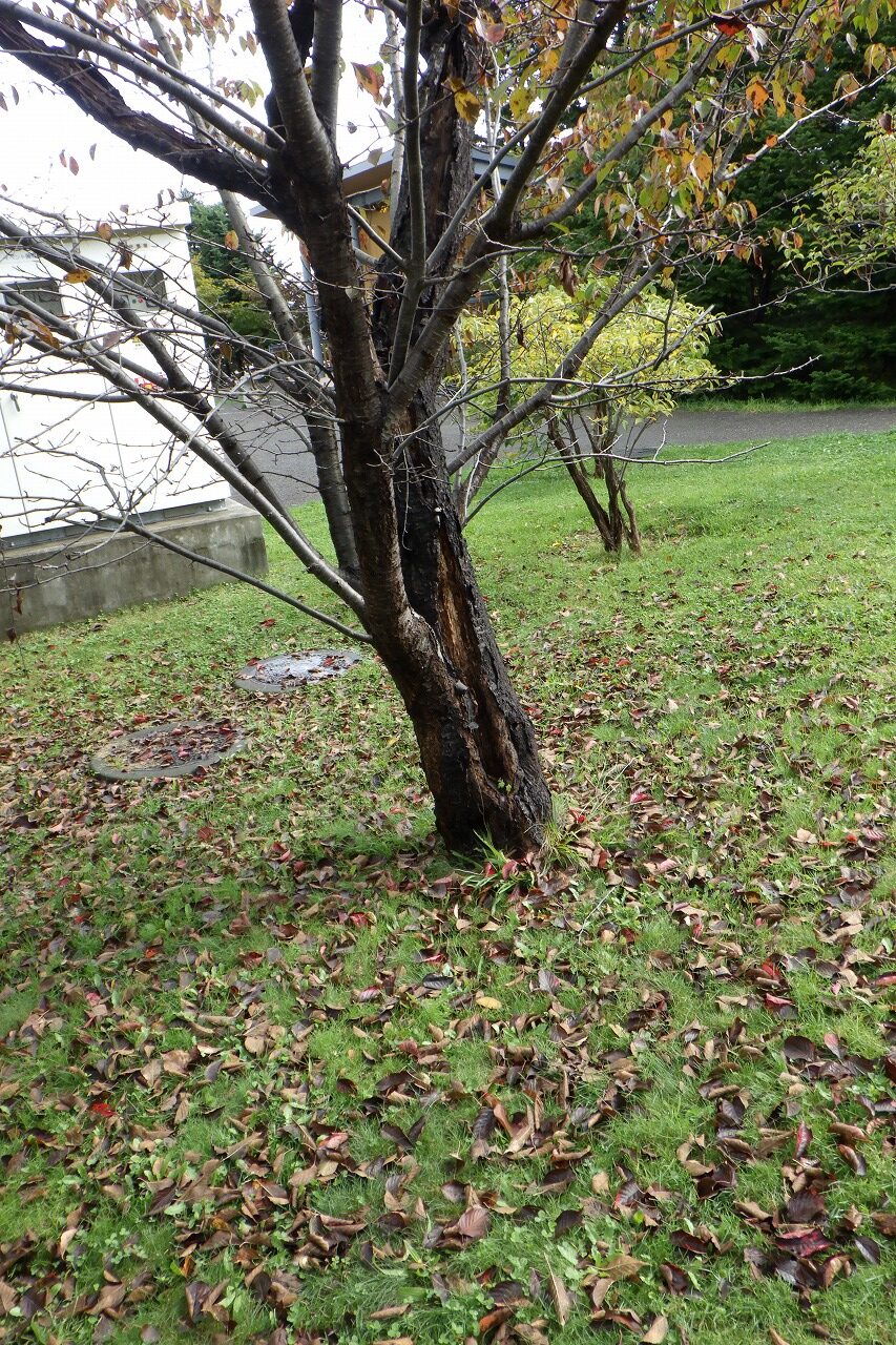「新桜並木」にある桜にはもうこれだけ葉が落ちている木があります。