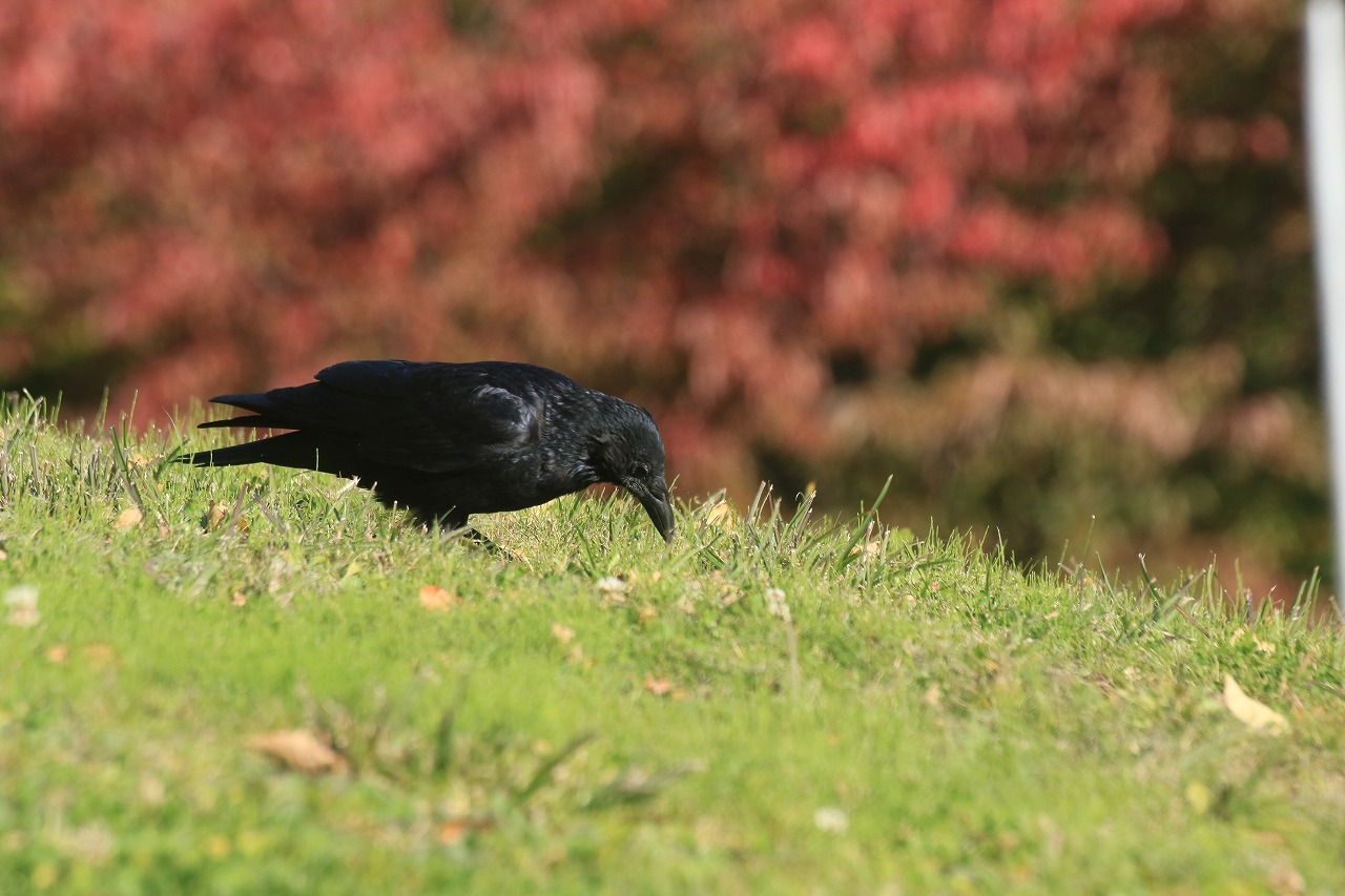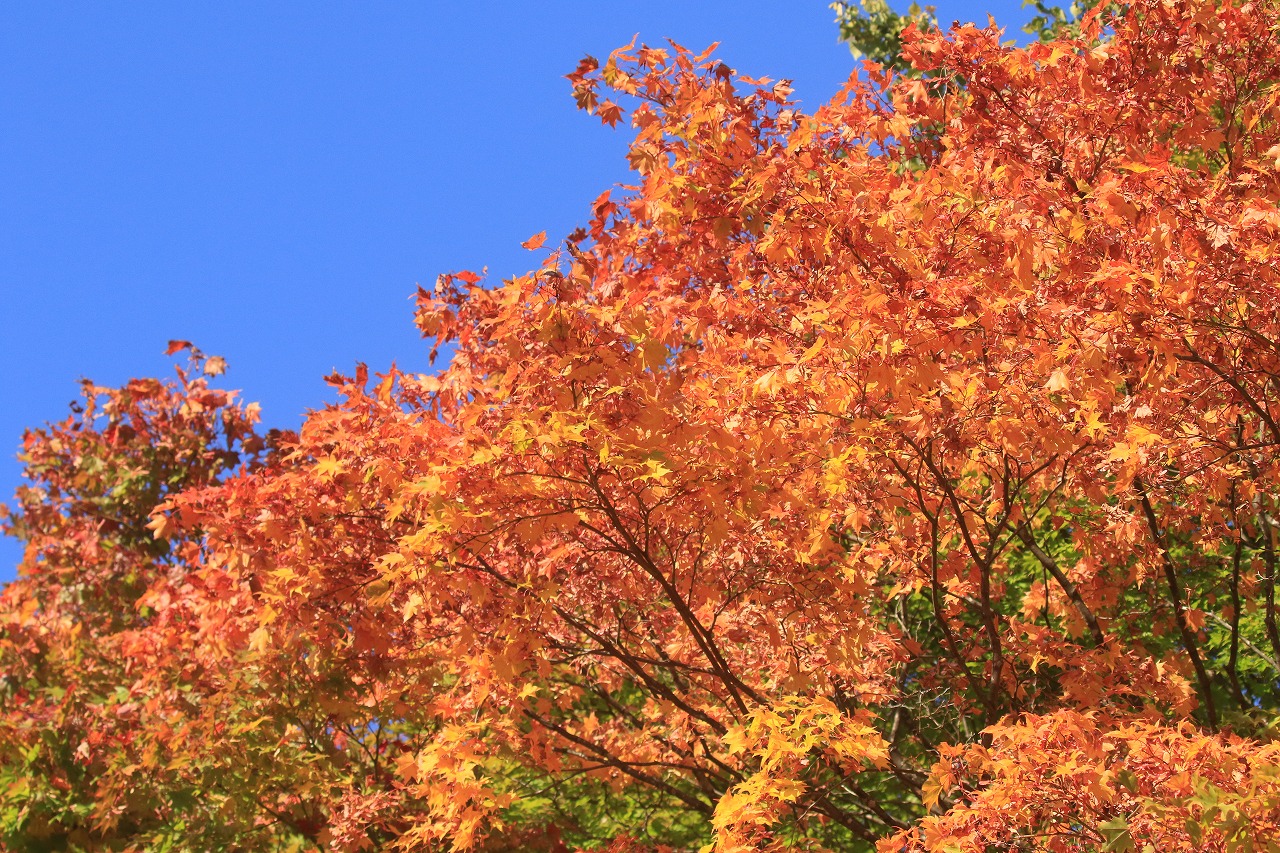 旭山記念公園でいちばんきれいに色づくヤマモミジ、もうだいぶ赤いですね。