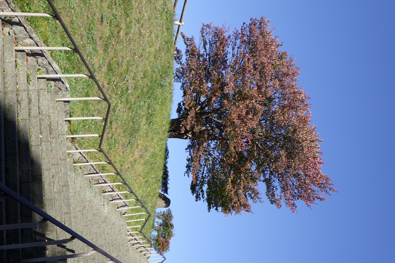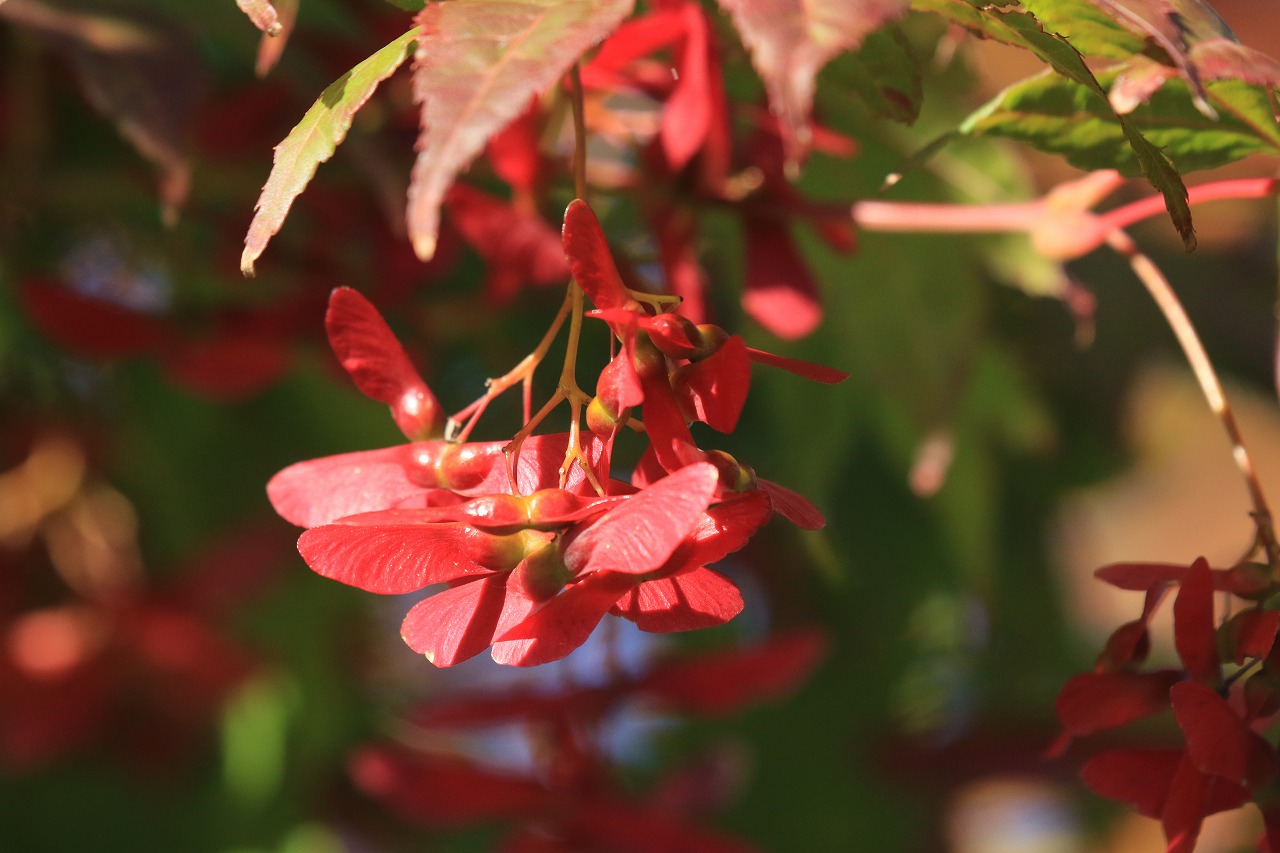 展望台西側、「アーチ橋」たもとの円形ベンチ近くにあるこの2本が、種子が赤く色づくヤマモミジです。