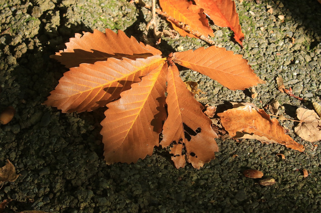 枝ごとおちたミズナラの落ち葉、きれいに茶色くなっていました。