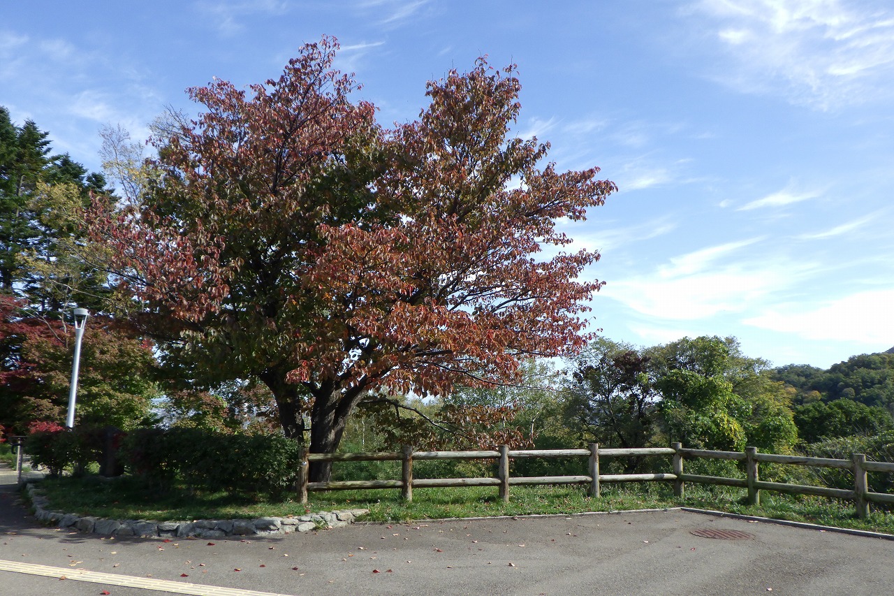 本日は、色づきの盛りを迎えた展望台一本桜のミニ特集。