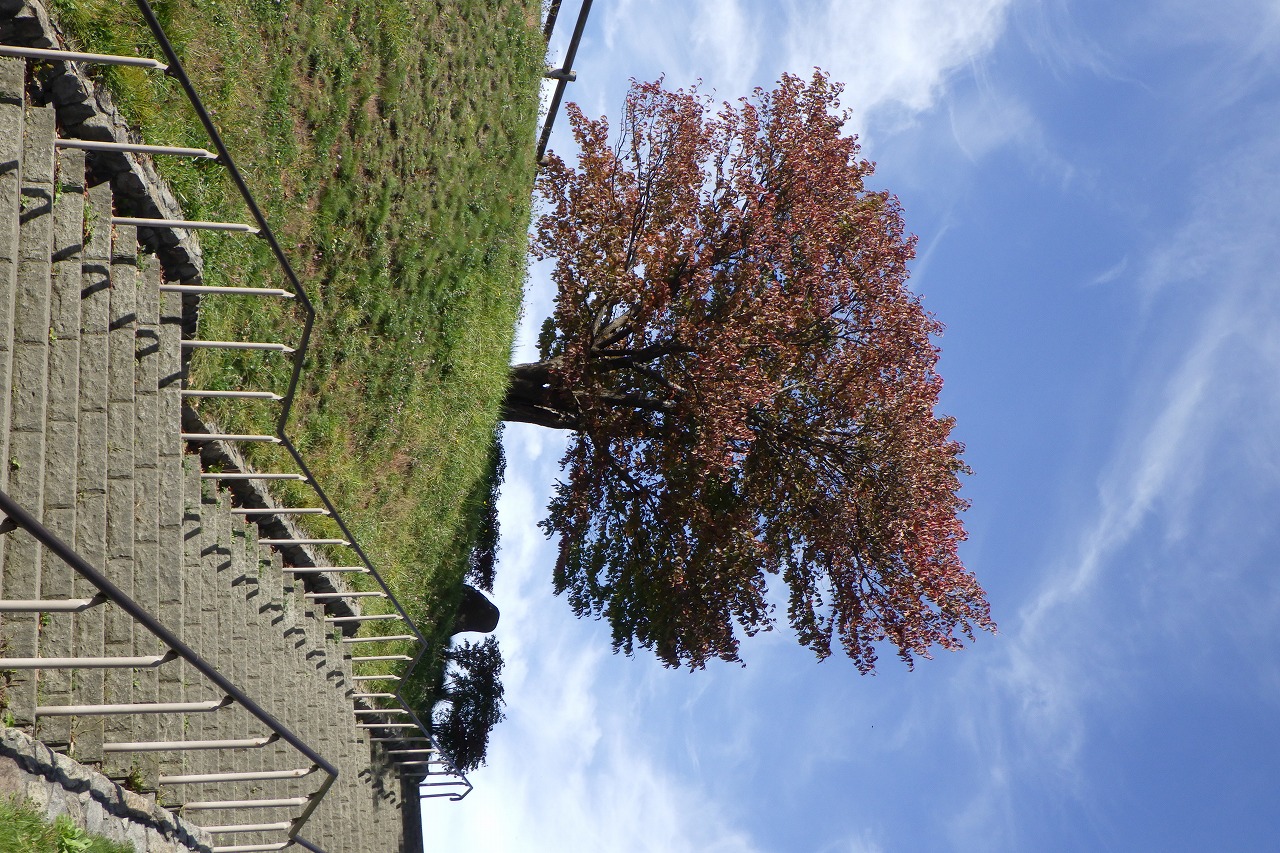 階段を登らず、園路を街が見える方に向かって歩き、振り返るとこんな風景が。