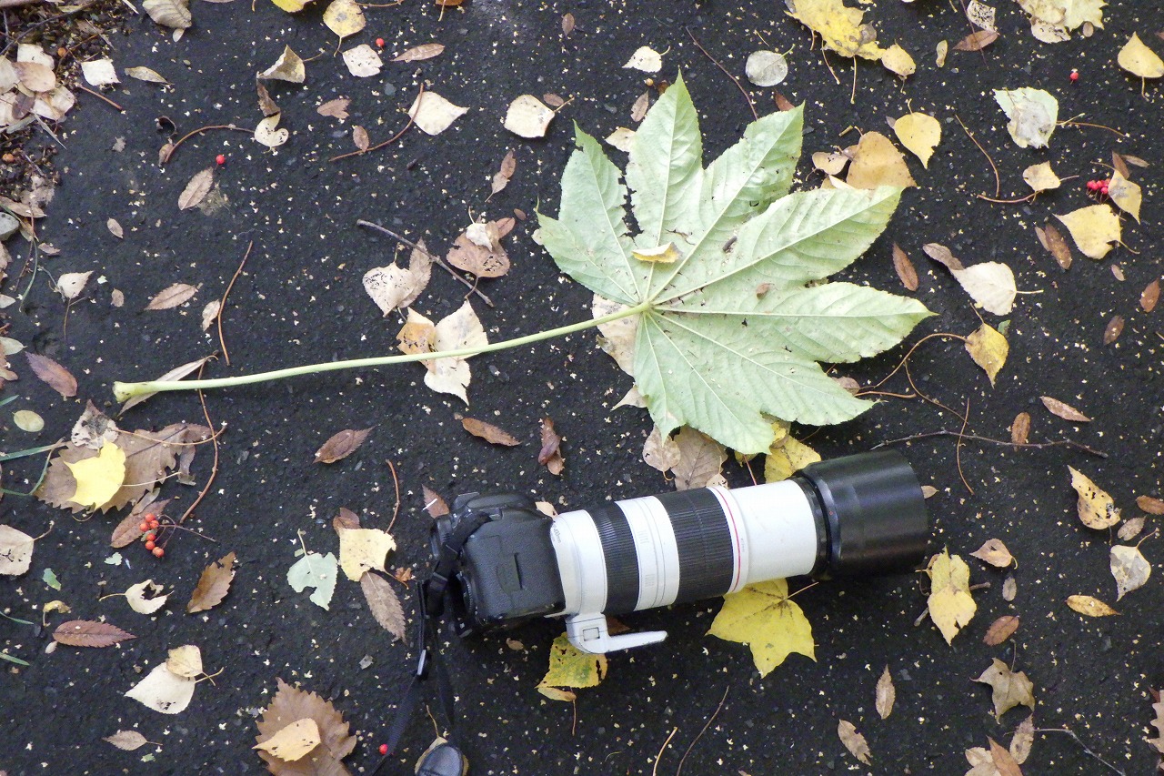 横に並べたカメラと見比べるとその大きさが分かる、まさに「天狗の団扇」ですね。