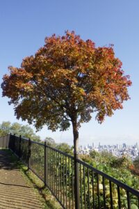 「展望台西側木立」のイタヤカエデ、木も立派、色づきもきれい。
