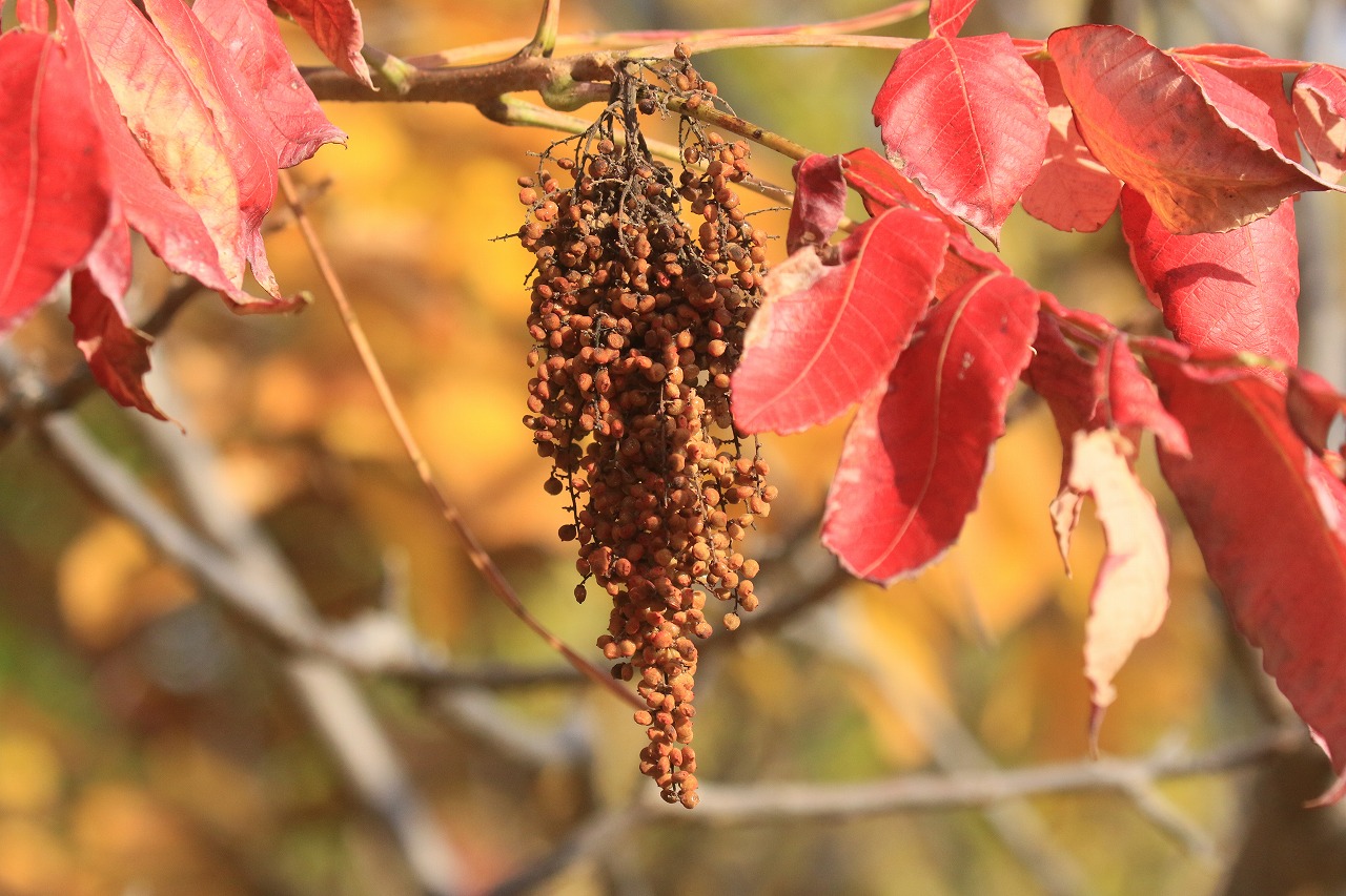 ヌルデの果実と紅葉。