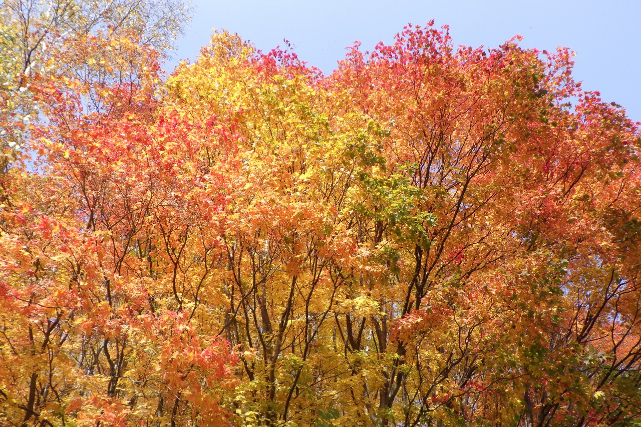 本日も、旭山記念公園でいちばんきれいに色づくヤマモミジから始めましょう。