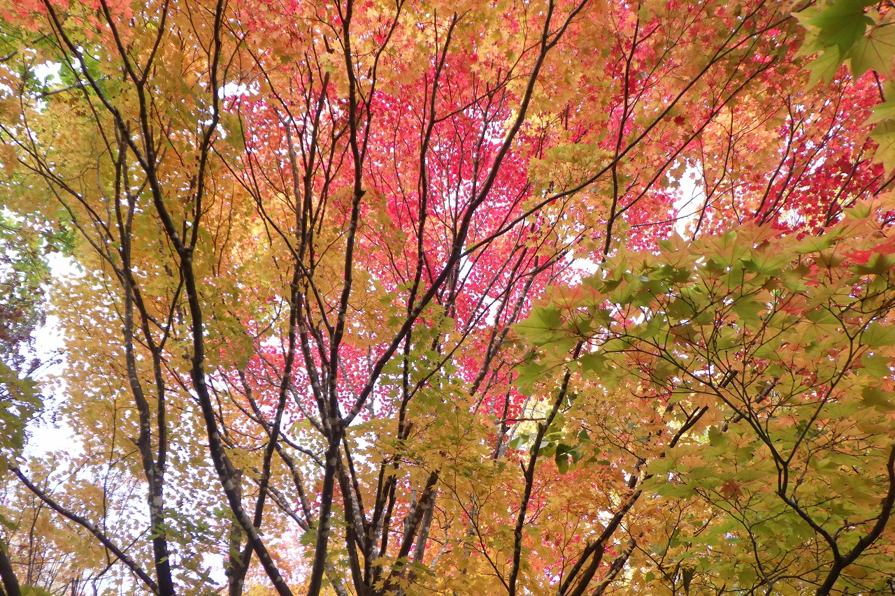 まだ緑色の葉がある一方で、今年は真っ赤に染まる葉が少ない印象があります。