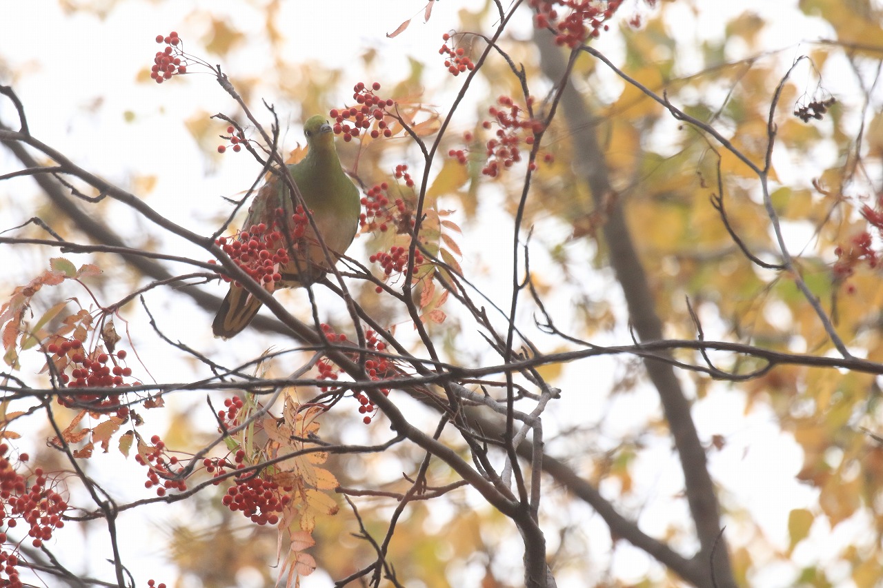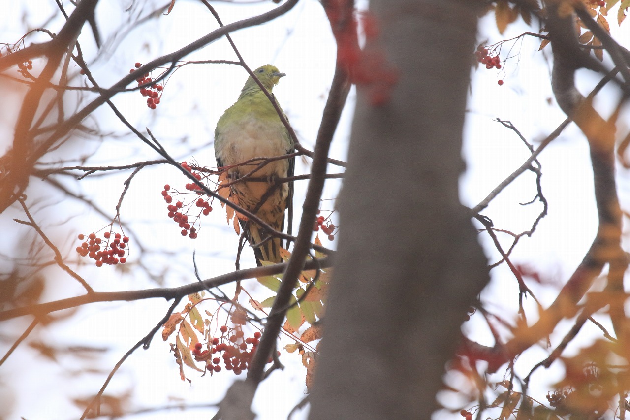 アオバトは通常9月下旬までに旭山記念公園では見られなくなりますが、過去に10月13日の観察記録があり、今回はさらに遅い記録となりました。