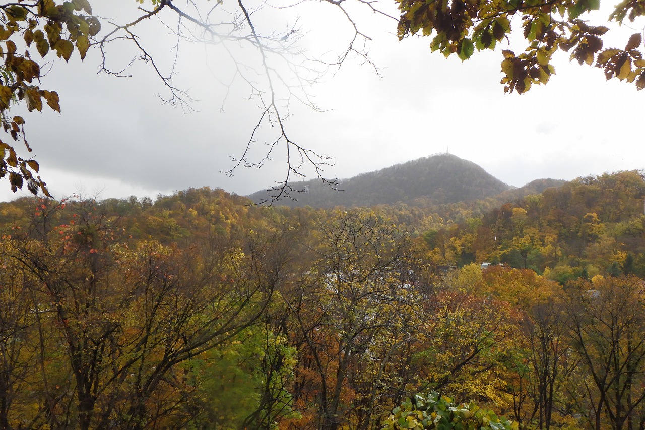 旭山記念公園紅葉情報、2024(令和6)年10月28日、雨の月曜日のようすです。