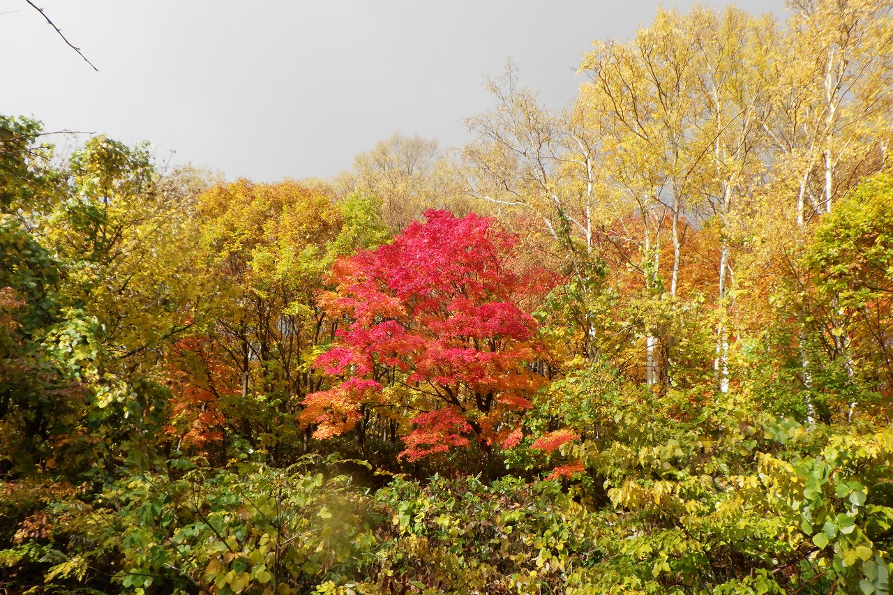 背景のシラカンバの黄葉がここ2日で一気に散ってしまいました。