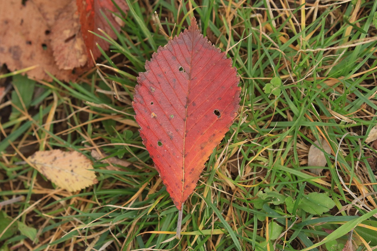 ハルニレの葉がこれだけ赤くなるのは珍しいです。