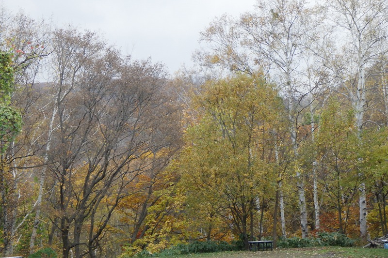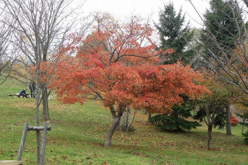 「ちびっこ広場」の右に見える遅く色づくニセアカシアも少しずつ紅葉してきました。