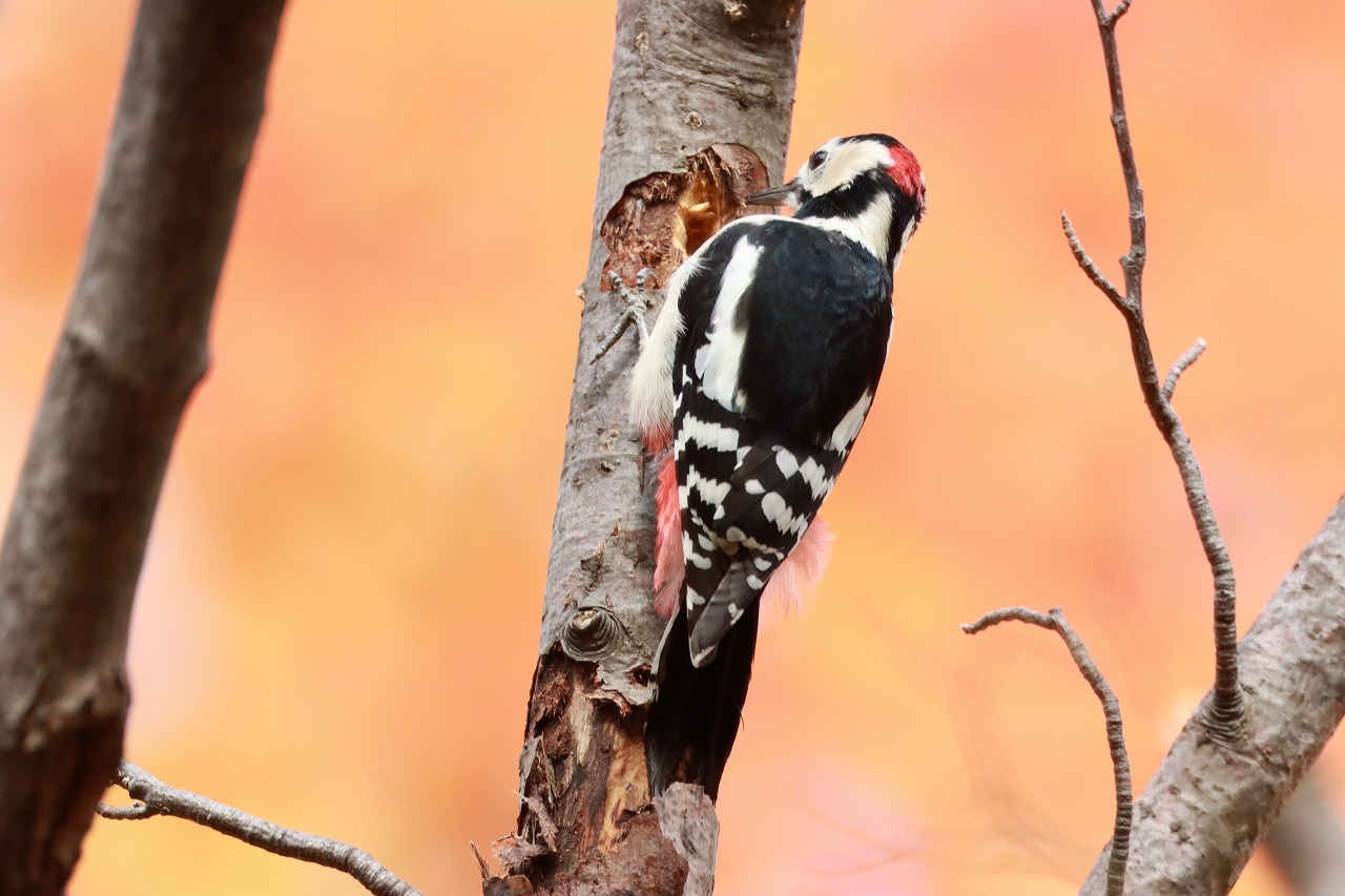 観察機会は多く、木の幹や枝で採餌している時はゆっくりと見ることができます。