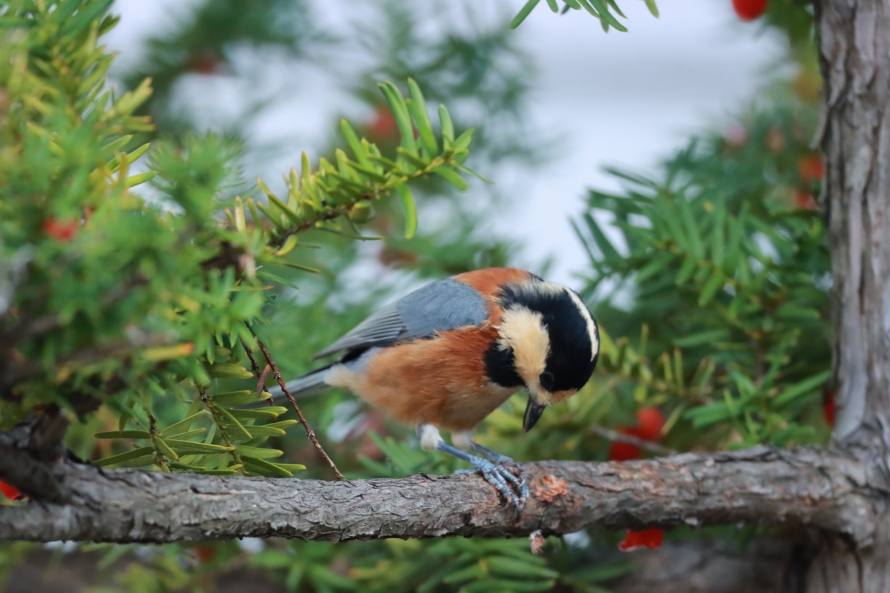 「作業員詰所」前のイチイの実を食べによく来ており、「第1駐車場」入口の横断歩道付近にあるイチイの木にもときどき来ます。