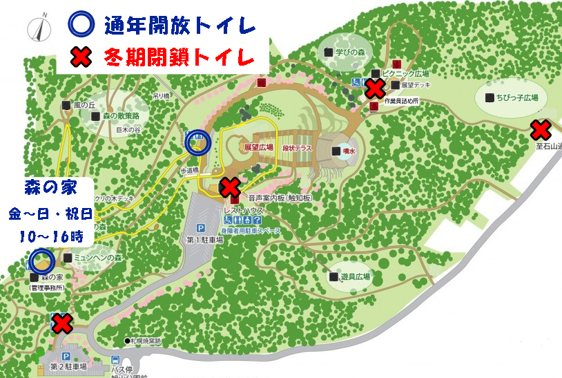 旭山記念公園のトイレなど冬期閉鎖施設について下記の日程で実施していますのでご案内いたします。