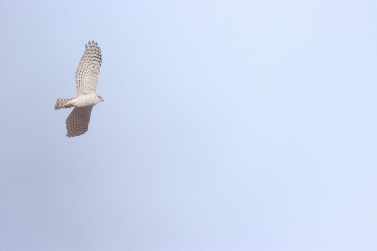 気が付いた時には公園やや南西側の上空を帆翔(羽ばたかないで風に乗って飛ぶこと)している姿が見え、南東に流れて見えなくなりました。