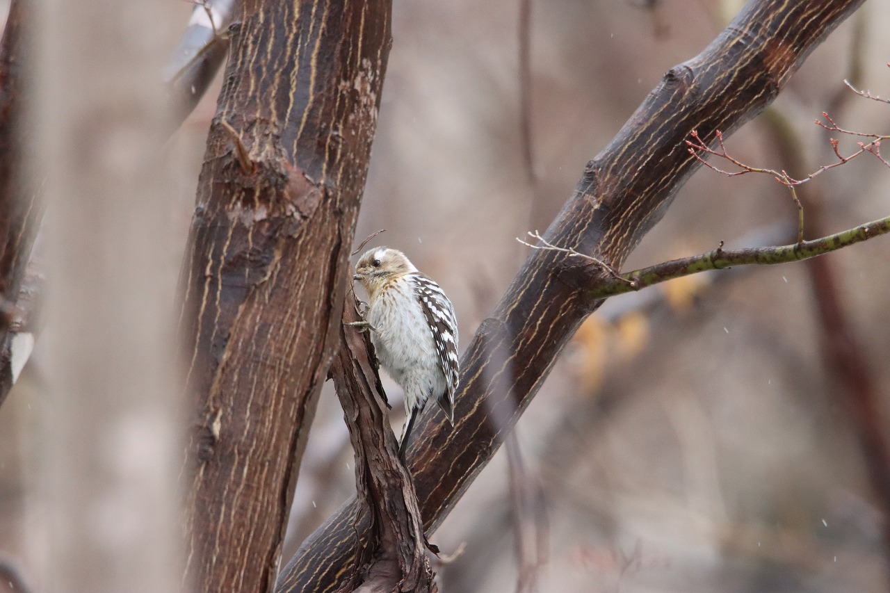 この時期にコゲラを撮影した際には、写真を拡大して雄の後頭部の赤い羽根があるかどうか探してみてください。