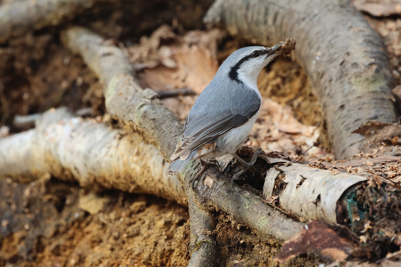 写真は地面に降りて土をくわえていましたが、この時はつがいの可能性がある2羽が近くにいて、巣作り(キツツキの古巣のリフォーム?)しているのかもしれません。
