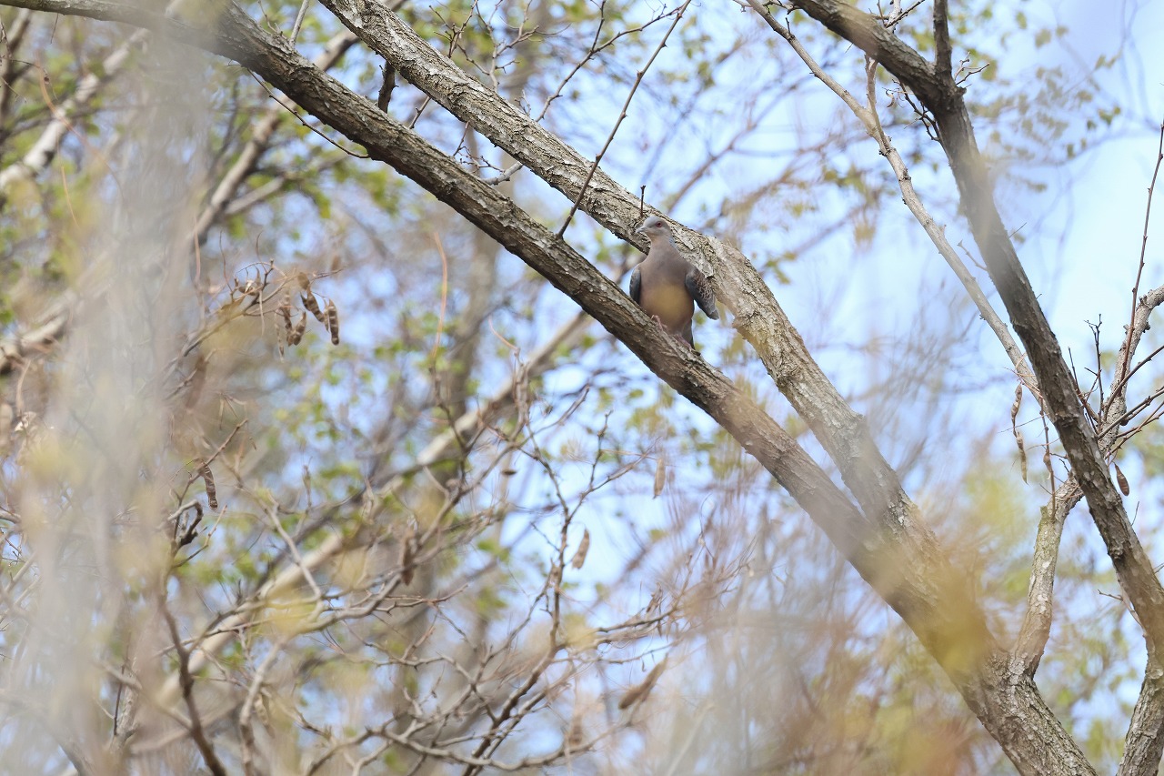 展望台「アーチ橋」付近のおそらく高いポプラの木から「ボボッ」と鳴き声が聞こえてきましたが、いつもは藻岩山方面など遠くから声が聞こえてくるのがこの時はとても近く、しかし姿は目視できませんでした。