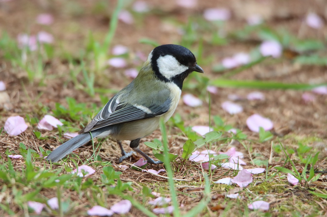 写真は桜の花びらが散り落ちた地面に降りたところです。