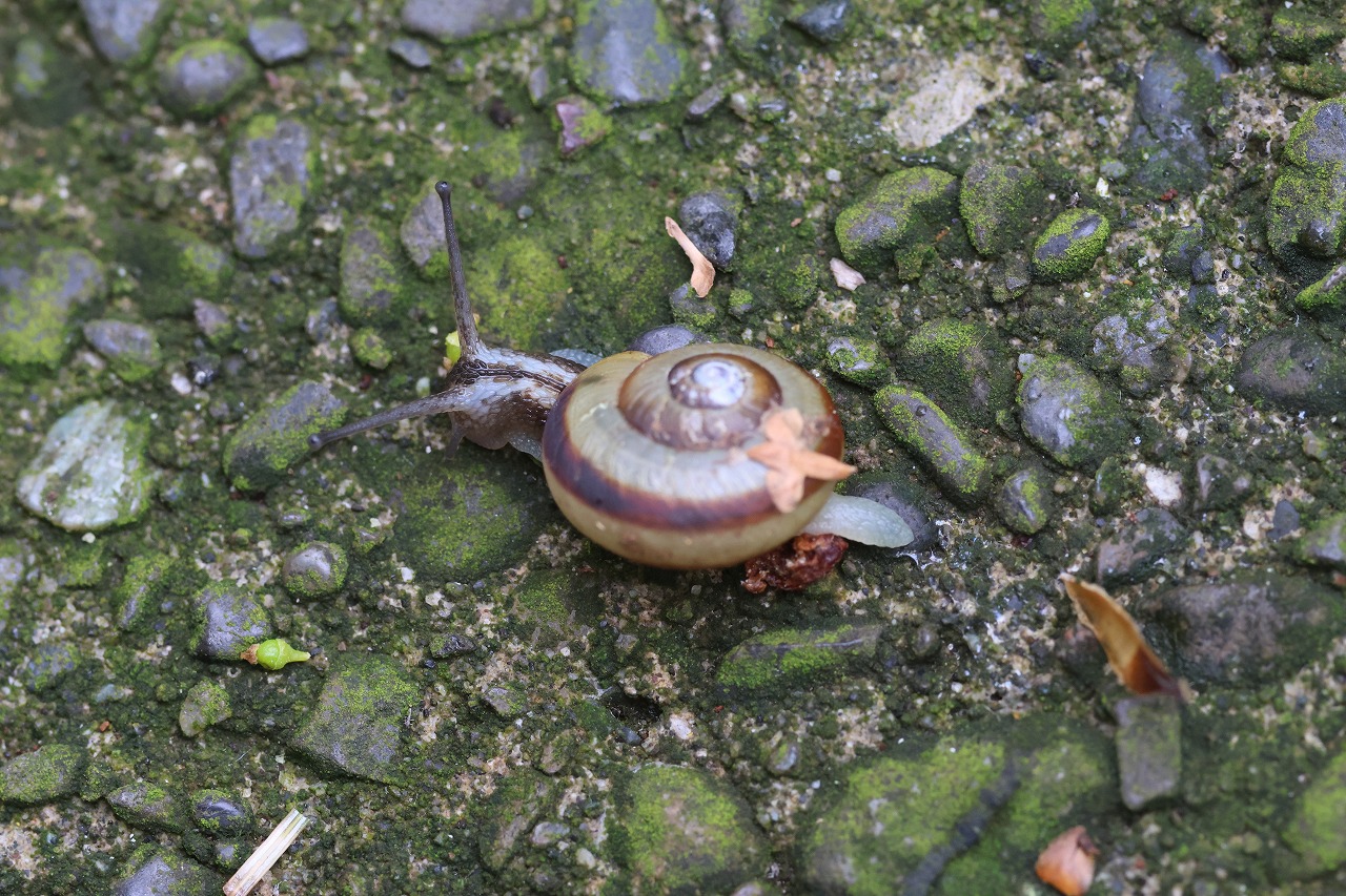 かたつむり=マイマイの仲間で、このところよく見られるようになってきました。