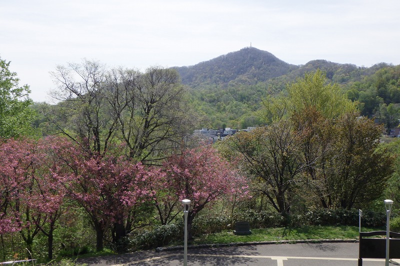藻岩山と八重ザクラ。