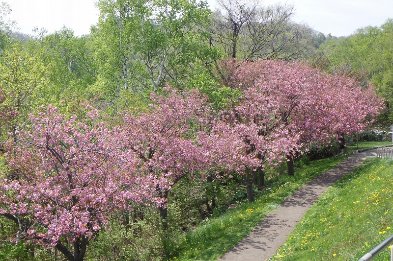 レストハウス近くの八重ザクラ並木の様子。