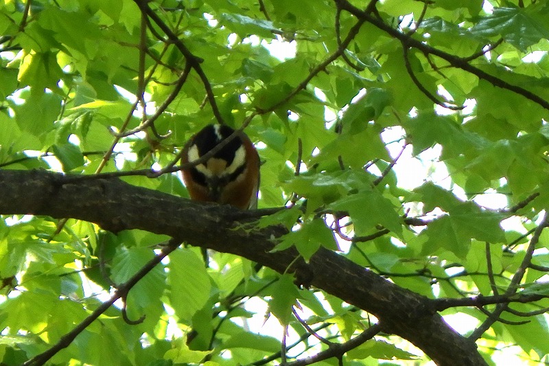 作業員詰所近くの新緑の中にヤマガラを見つけました。