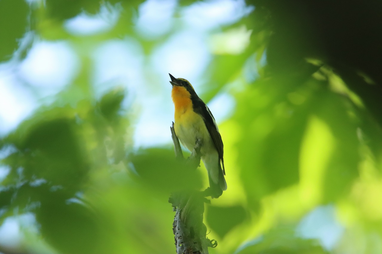 5月18日の野鳥観察会では、森の家の裏、「藻岩山登山口」周辺、「吊り橋」周辺で比較的近くから囀りが聞こえたものの姿は見つけられず、「遊具広場の森」でようやく姿を見ることができました。