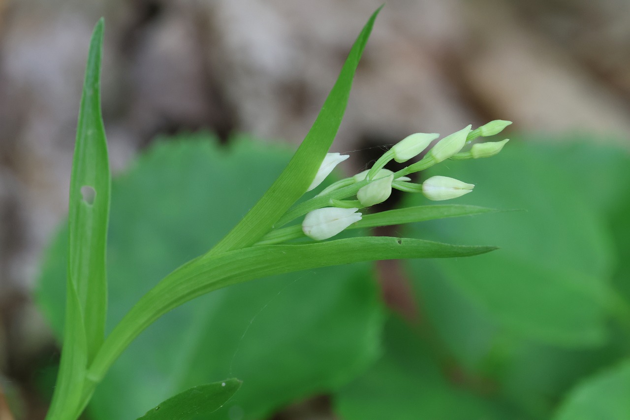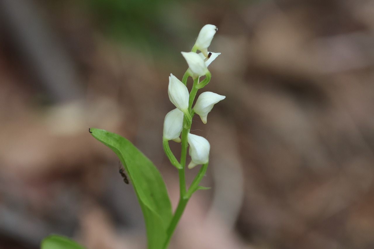 ラン科の白い花、ギンランとクゲヌマランが咲いています。