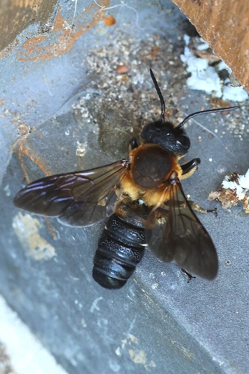 森の家の周りや「中央トイレ」付近のハリギリの周りで飛び交っているハチの仲間。