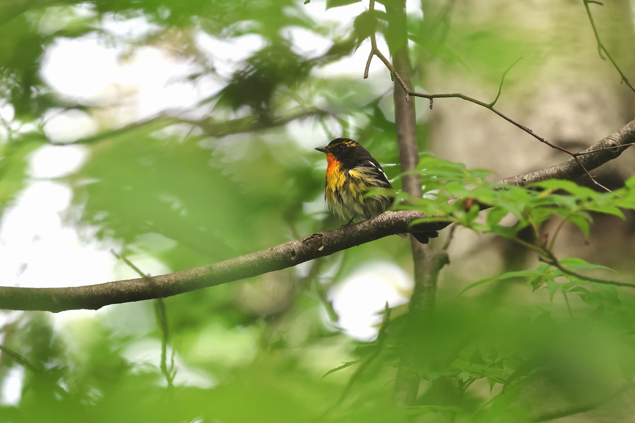 幼鳥はだいぶ橙色が出てきており、写真は幼鳥で、枝被りですが色はなんとか見えるかと思います。
