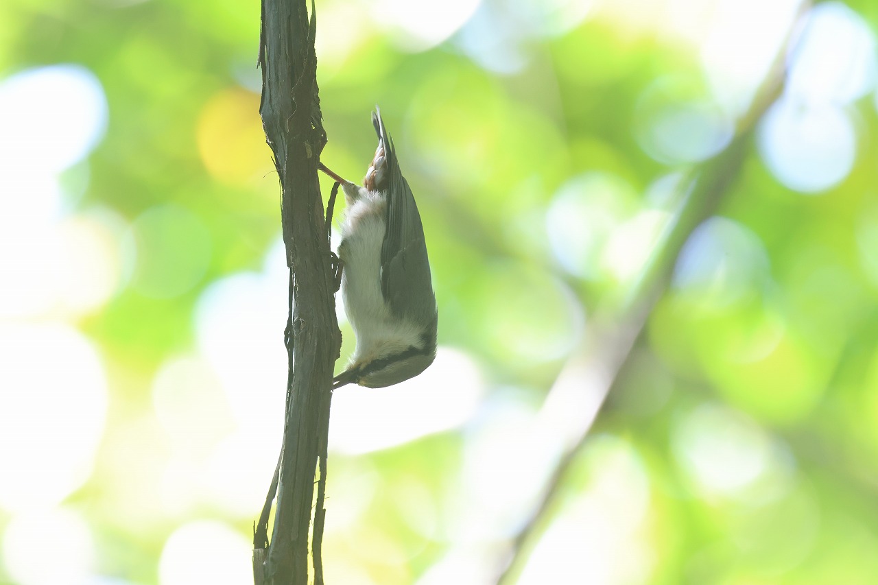 高い位置にいることが多いですが、低い位置にも降りて来ることがあるので、囀りもしくは「ツー」「キュピキュピ」という地鳴きが聞こえたら探すと見られることがあります。