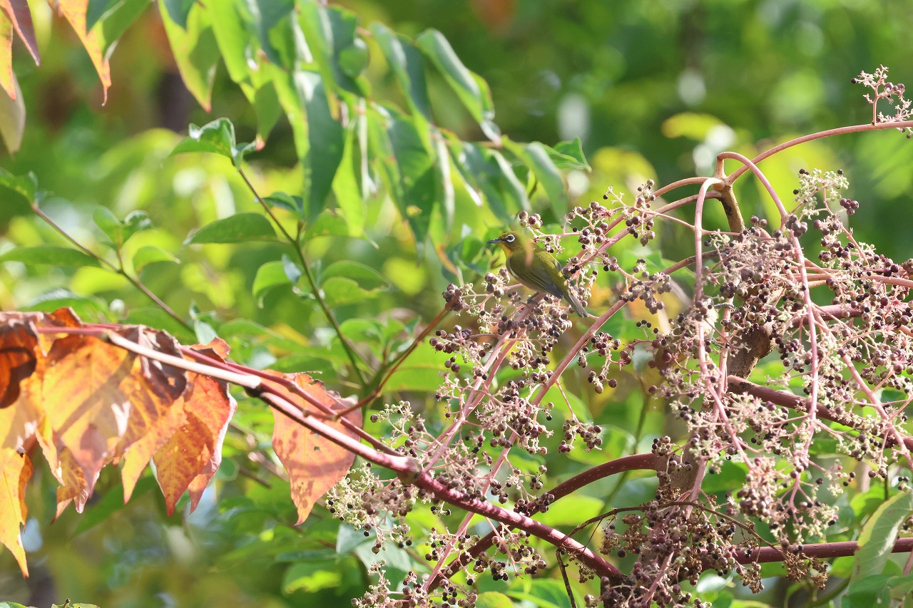 また、オオルリのところで触れた「森の家階段」脇のタラノキ果実を食べにも来ており、写真はその様子です。
