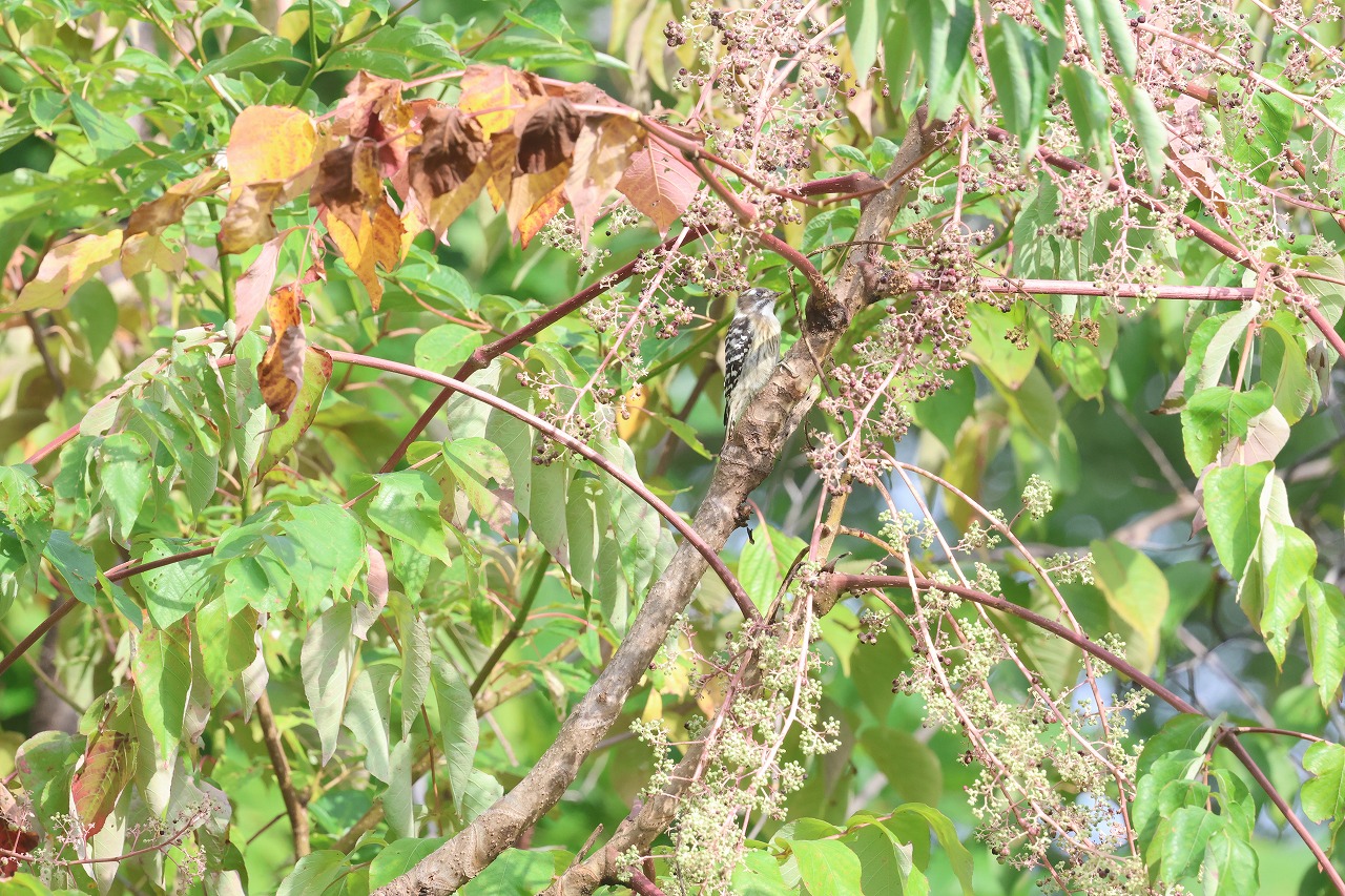 コゲラも「森の家階段」脇のタラノキ果実を食べに来ています(小さくて分かりにくいですが・・・)