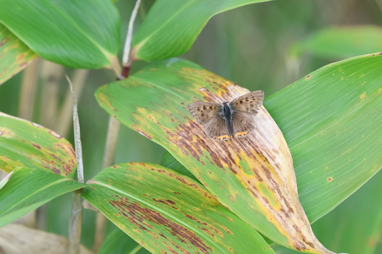 ベニシジミ、夏型はオレンジ色の部分がほとんどなく、最初は何の蝶か分かりませんでした。