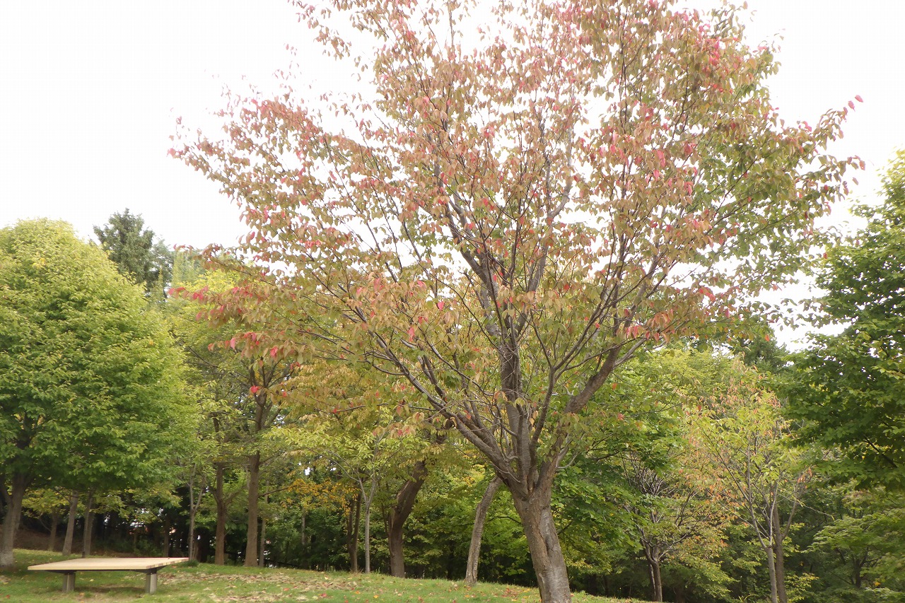 「展望台一本桜」の紅葉はゆっくりと進んでいます。