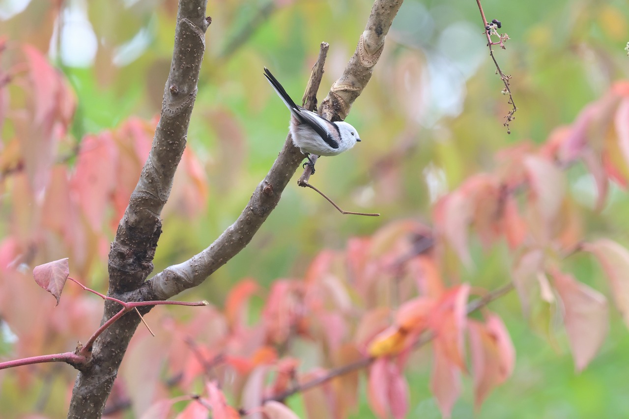 まずは昨日10月13日月曜日に撮影した1枚から、シマエナガとエゾヤマザクラの紅葉。